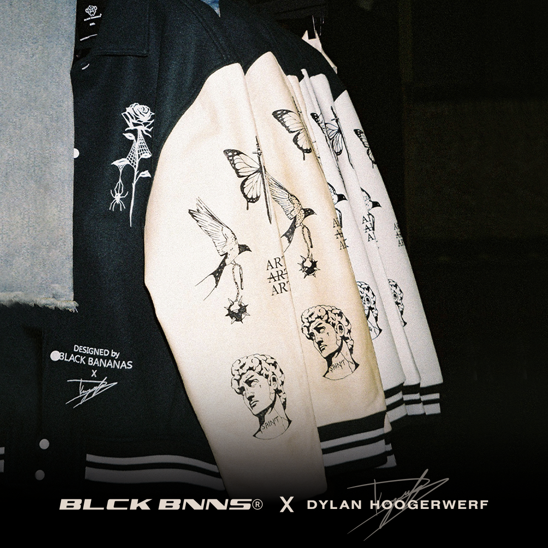 Black Bananas und Dylan Hoogerwerf haben sich zusammengetan, um die erste tätowierte Jacke varsity zu entwerfen.