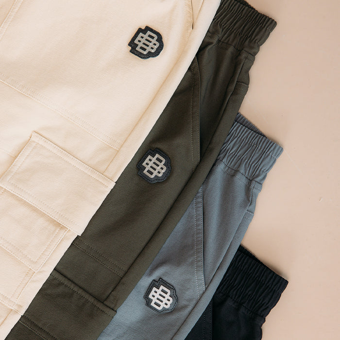 Wir bieten Cargohosen für Männer, Frauen und Kinder in verschiedenen Farben an.