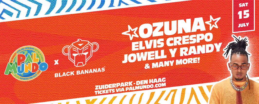 Black Bananas kommt auch dieses Jahr wieder zu Pal Mundo mit Ozuna, Elvis Crespo, Jowell y Randy & vielen anderen am 15. Juli in den Zuiderpark, Den Haag Black Bananas ist offizieller Partner von Pal Mundo 2023.