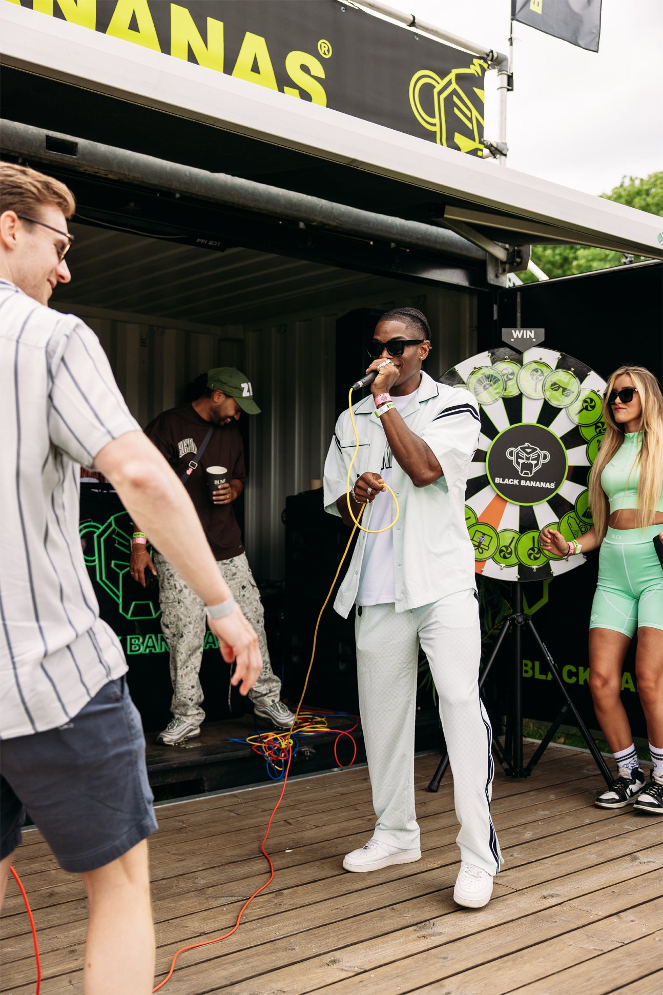 Am Stand von Black Bananas haben wir eine Karaoke-Bühne organiDurt, die von Chase betreut wurde: - Chase - Djoevenile - Tobias Prins - MC Rudebwoy
