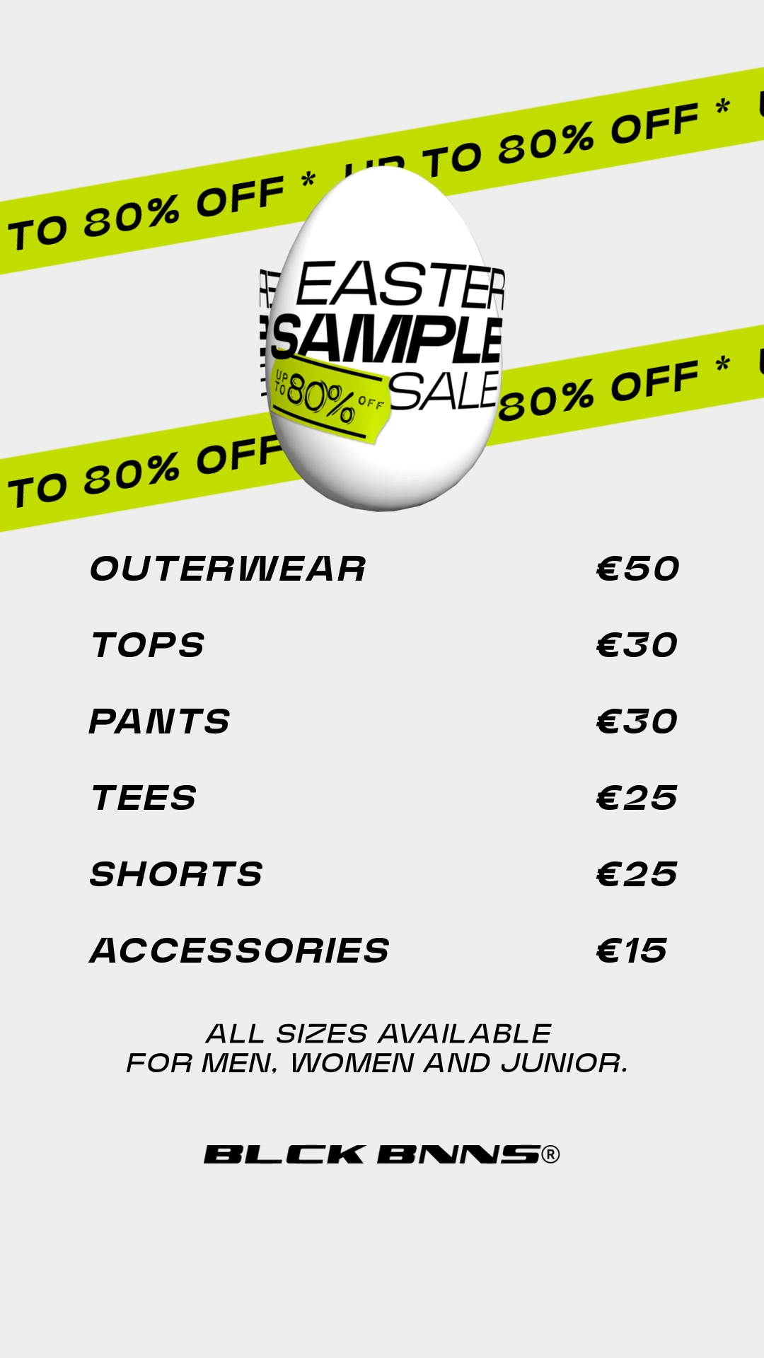Ab Samstag, den 30. März, öffnen wir die Türen für alle unsere Fans. Der Musterverkauf dauert bis Montag, den ersten April.