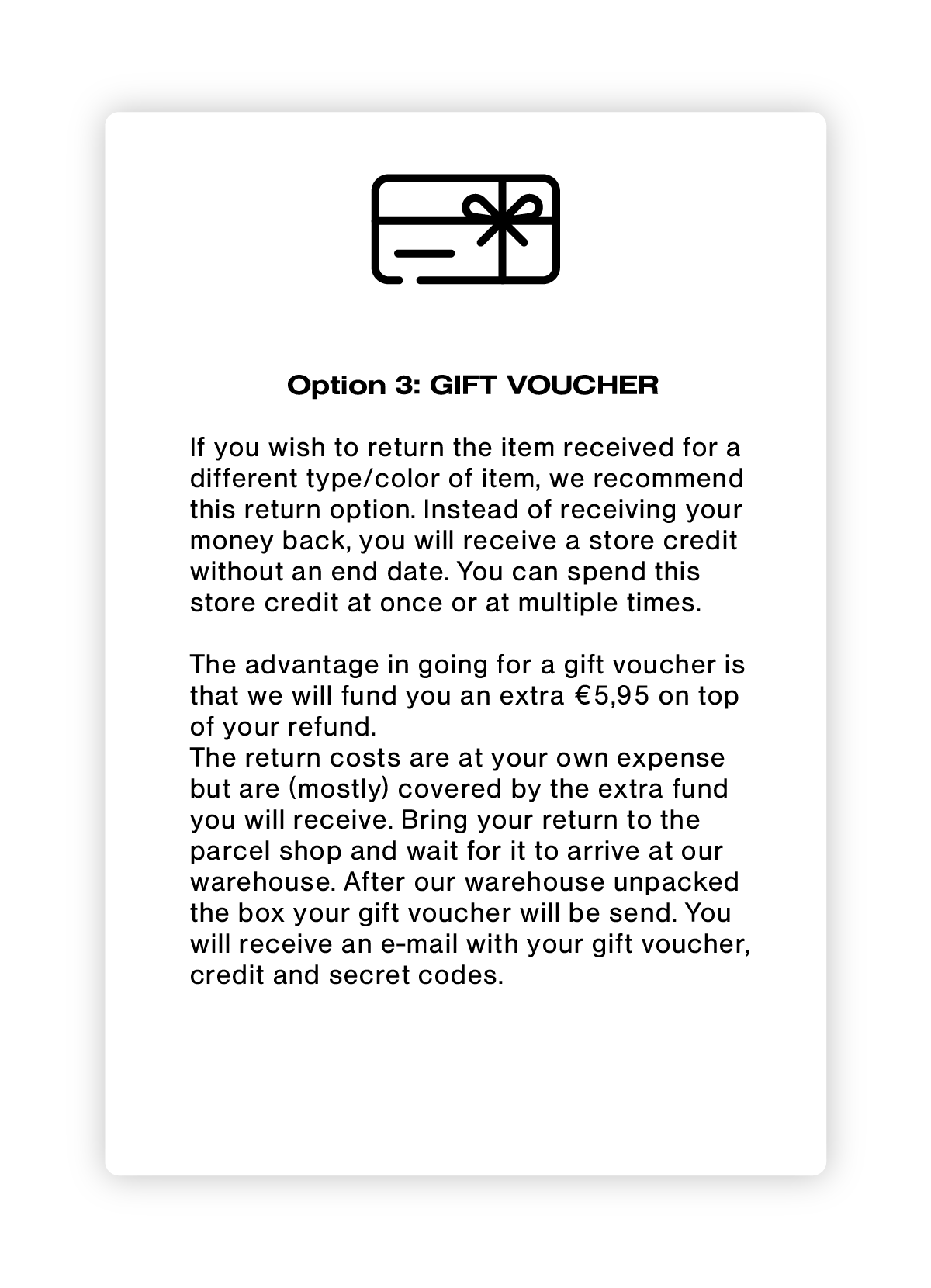 Wir haben ein Rückgaberecht, von dem sowohl du als auch unser Planet profitieren. Bei der Rückgabe von Artikeln wird eine Gebühr von 5,40 € (NL) erhoben, mit der du bis zu 2 Artikel ohne zusätzliche Kosten zurückgeben kannst. Willst du mehr als 2 Artikel zurückgeben? Für jeden weiteren Artikel zahlst du einen Beitrag von 0,99 €.